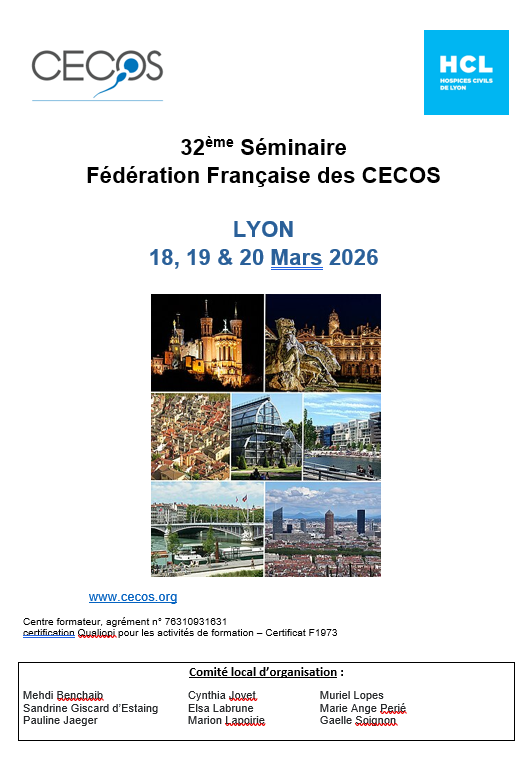 Comme chaque année, la Fédération Francaise des CECOS se réunira pour son séminaire annuel. Celui ci aura lieu les 18, 19 et 20 mars 2026.